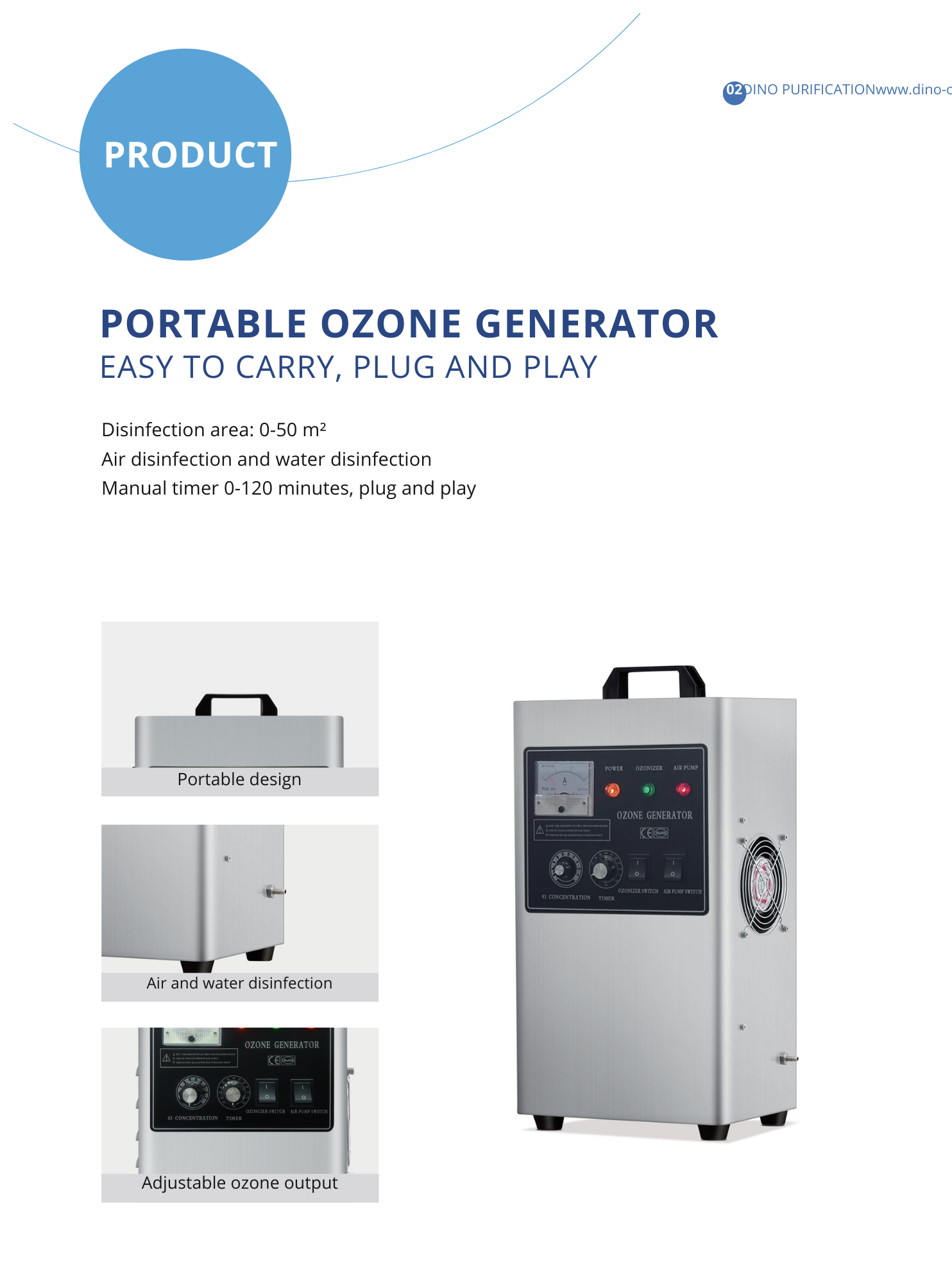 Adjustable Output: Allows for ozone output adjustment between 10% and 100%.