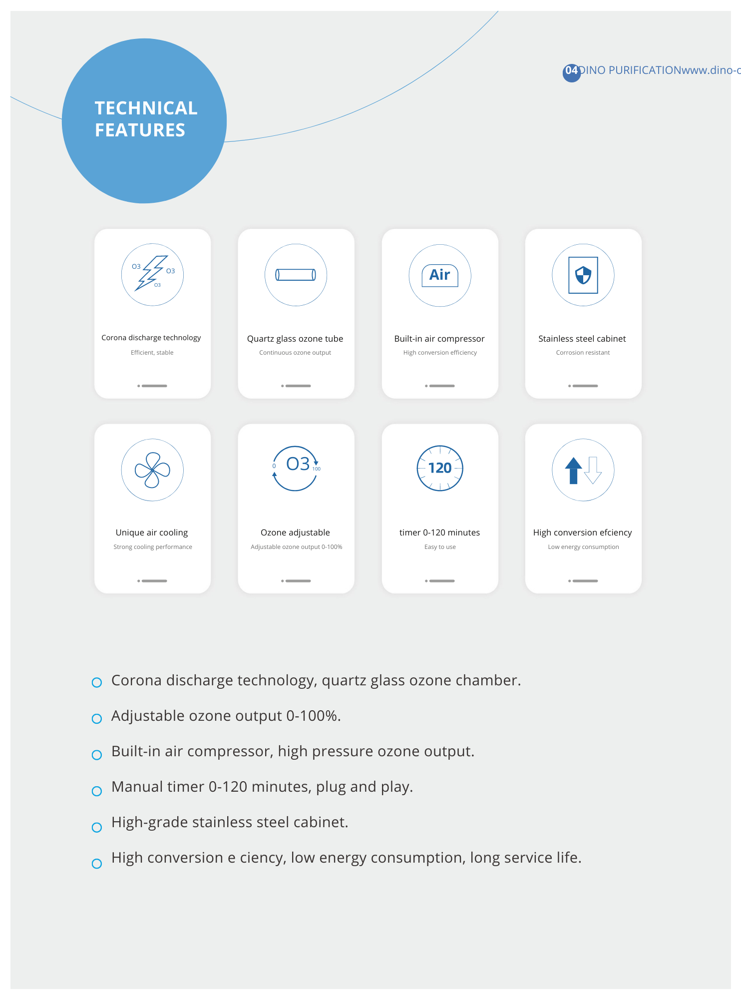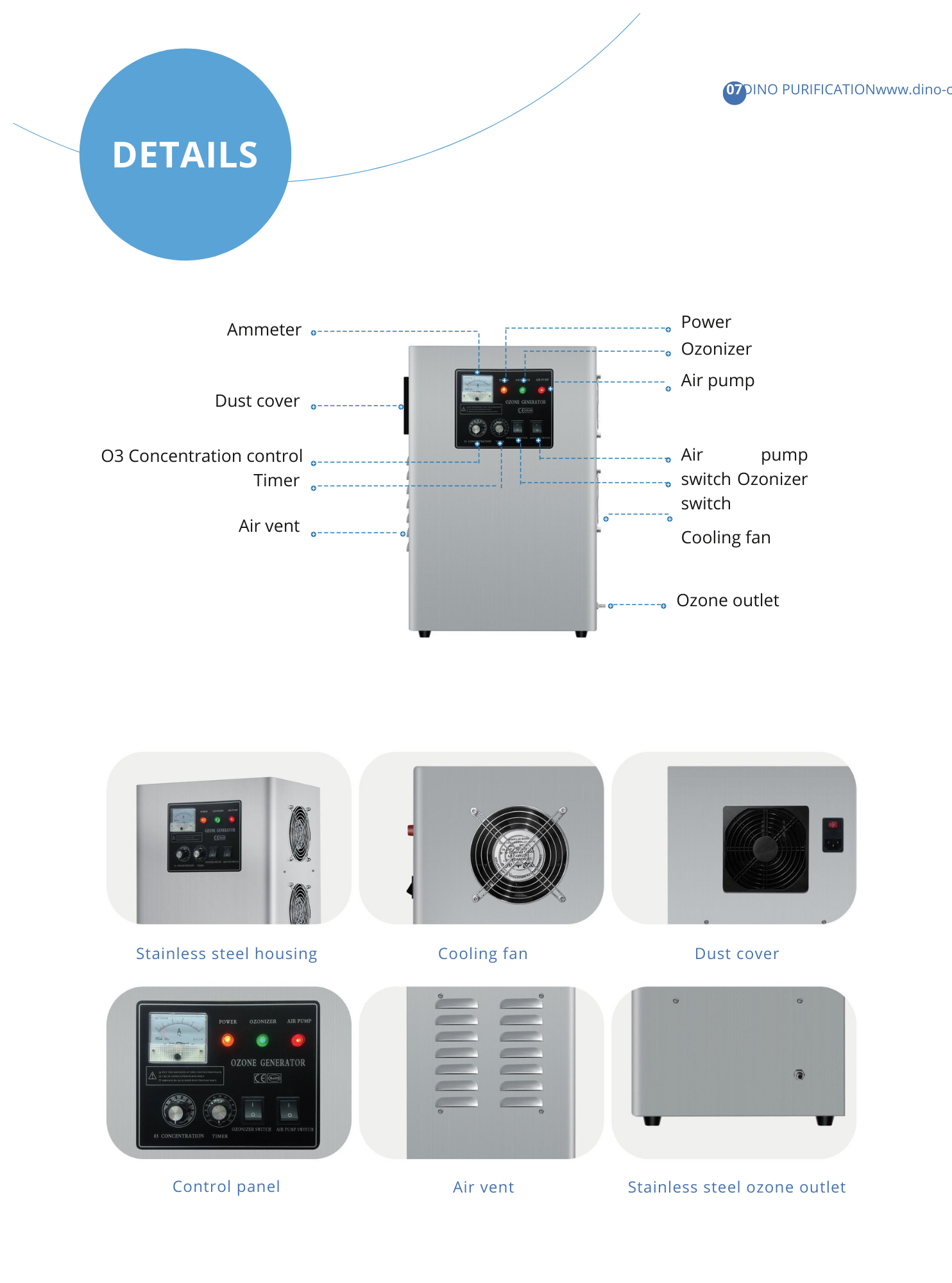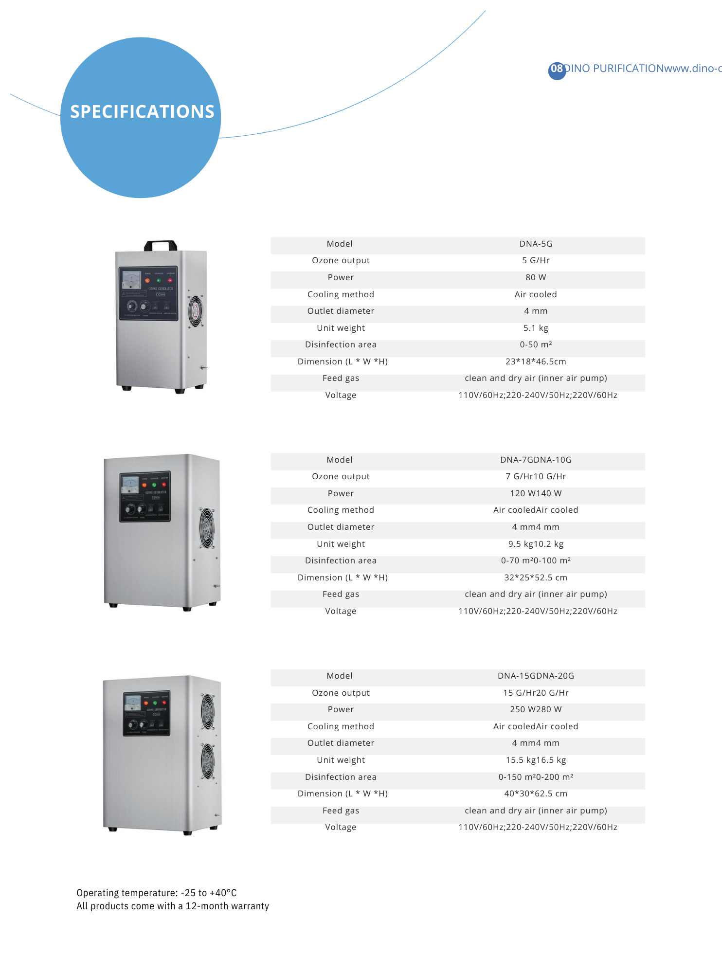 Ozone Output: 50 grams per hour, adjustable to suit specific needs.