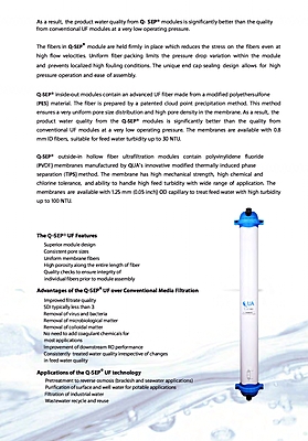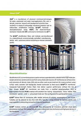 In summary, the QUA Q-SEP® 8012 ultrafiltration module combines advanced membrane technology with a high surface area design to deliver reliable and efficient water treatment solutions across various industries.
