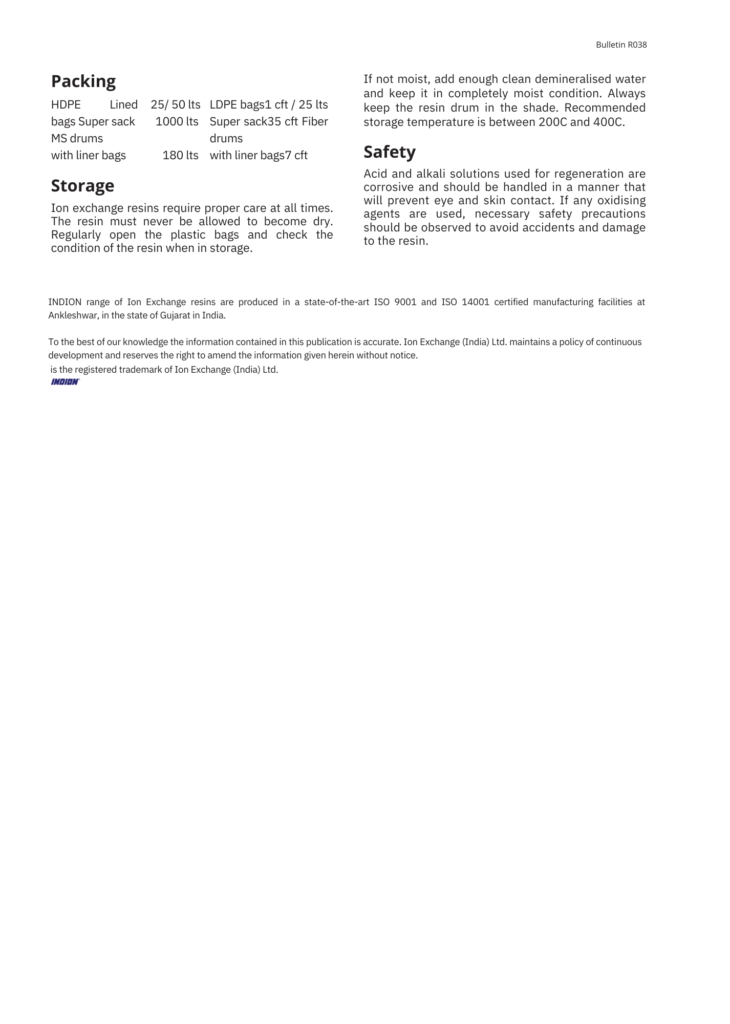 This resin is compatible with standard regeneration processes using sodium chloride (NaCl), ensuring easy maintenance and cost-effective operation. Its superior selectivity and exchange efficiency also make it suitable for applications in boiler feed water treatment, cooling towers, and potable water softening, protecting equipment from scale formation, corrosion, and fouling.