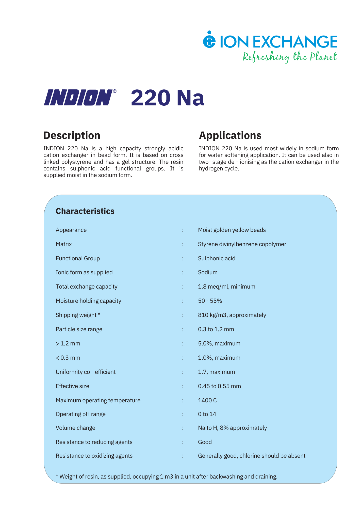 Available in a 50-liter pack, Resin Ion Exchange 220 NA offers a ready-to-use, high-performance solution for all water softening and purification needs.